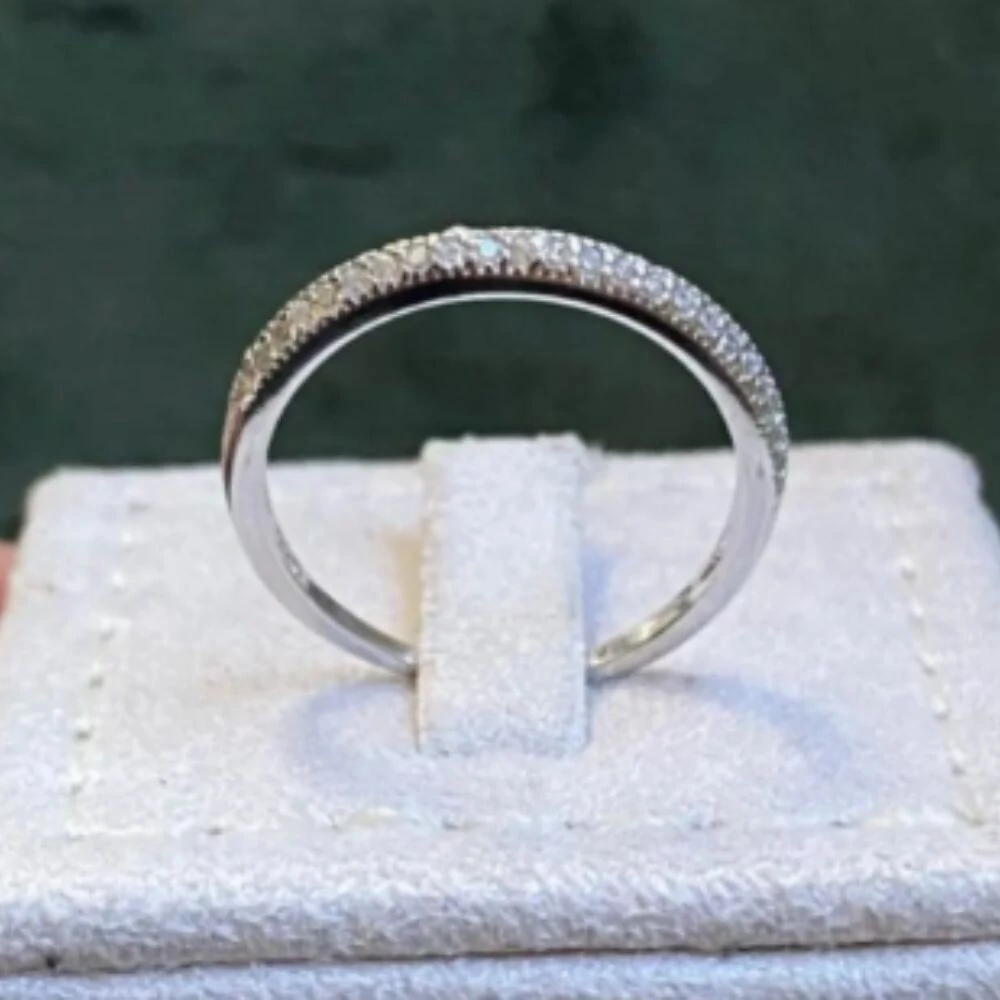 A nossa Meia Aliança Slim é a definição de elegância atemporal. Confeccionada em Prata 925 legítima, esta peça apresenta uma fileira contínua de microzircônias selecionadas, lapidadas para refletir a luz de todos os ângulos com um brilho comparável ao de diamantes.
